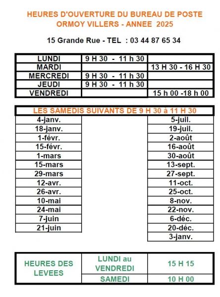 (Jours d'ouvrtures selon planning disponible à l'agence postale ou à la mairie - voir ci dessous))